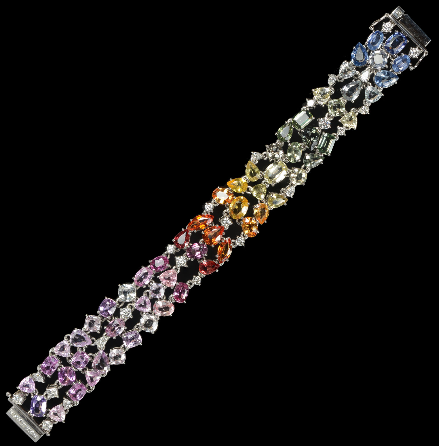 (English) 18ct Multi-coloured Sapphire and Diamond Bracelet