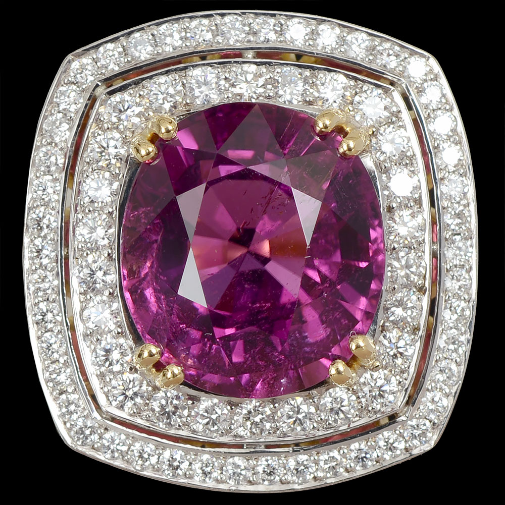 (English) 18ct rubelite and diamond dress ring