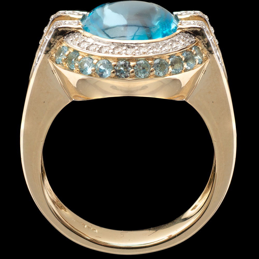 (English) 9ct cabochon cut blue topaz and diamond ring