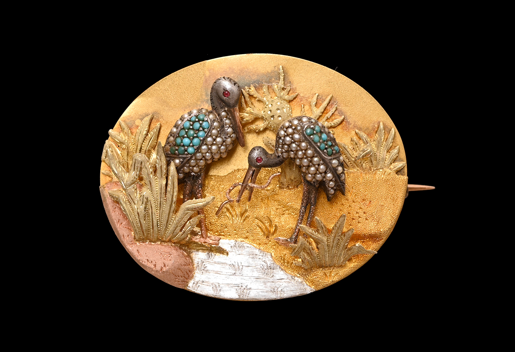18ct Pink Topaz Seed Pearls And Turquoise Georgian Brooch