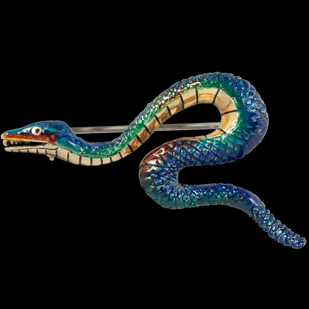 18ct Enamel and Gold Snake Brooch