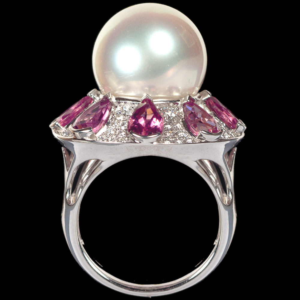 18ct Tourmaline and Diamond Ring with 13mm Pearl by Autore
