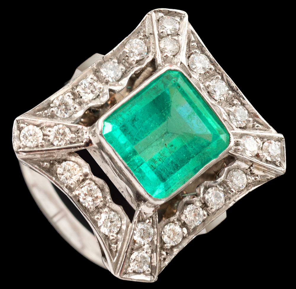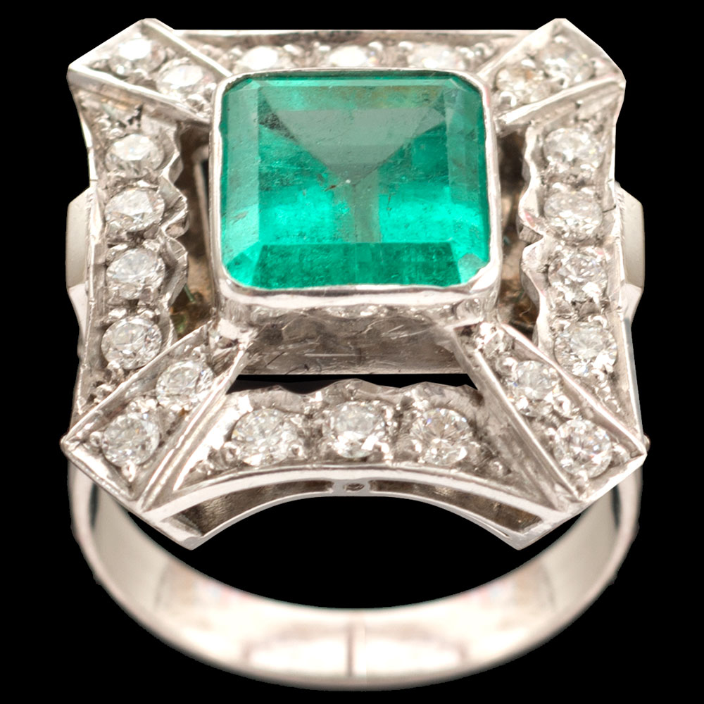 18ct White Gold & Emerald Deco Ring