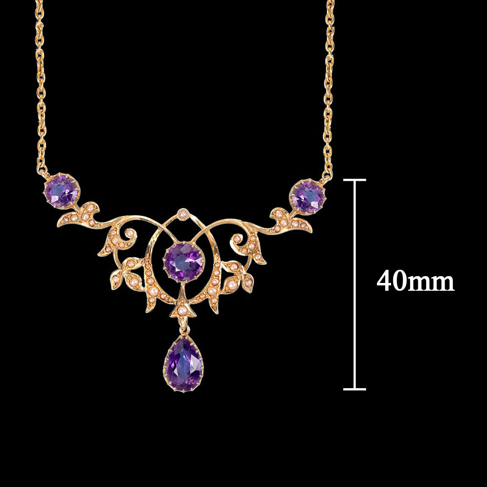 9ct Amethyst & Seed Pearl Edwardian Necklace