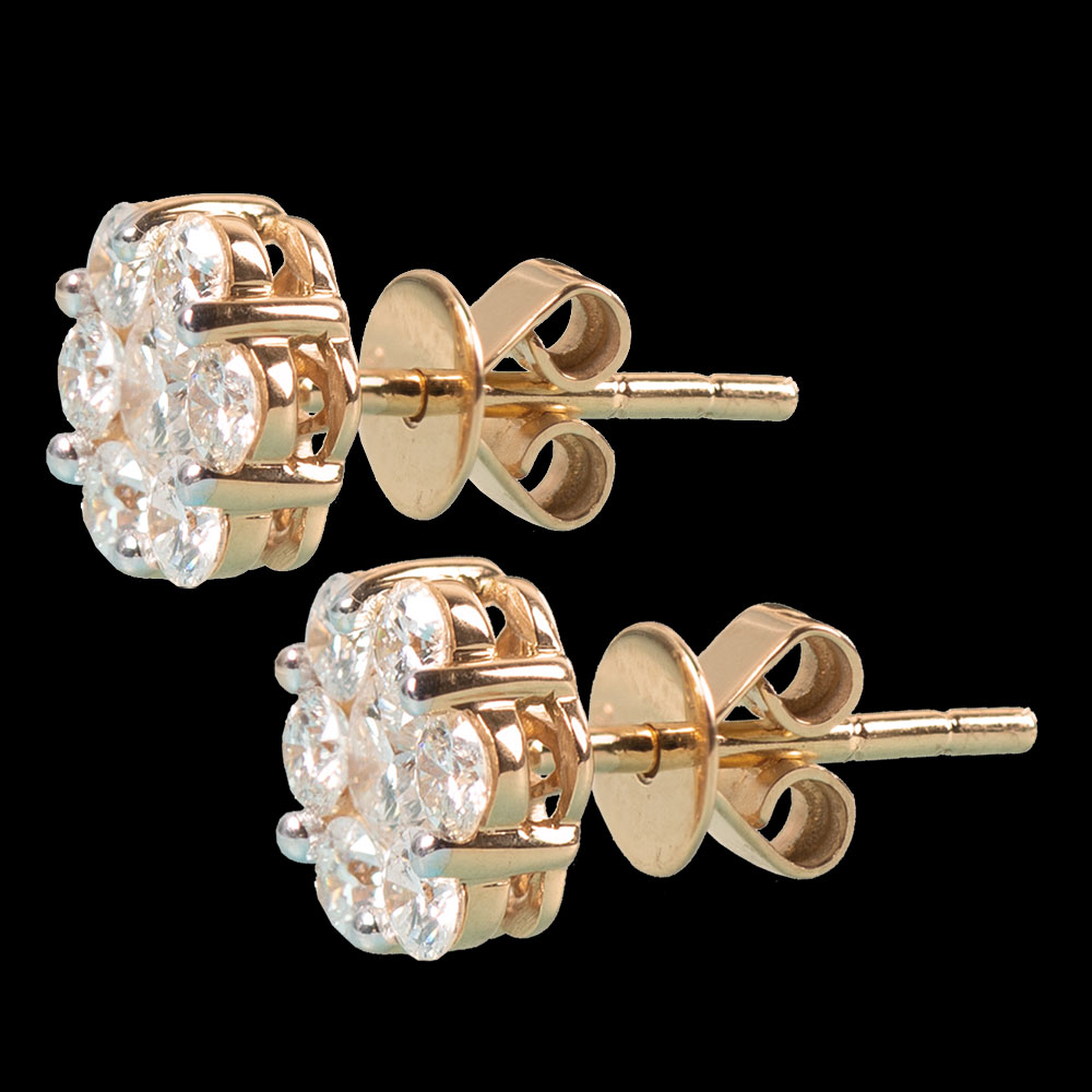 9ct white gold & 2.04ct Diamond Cluster Studs
