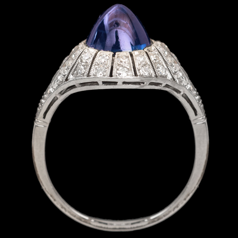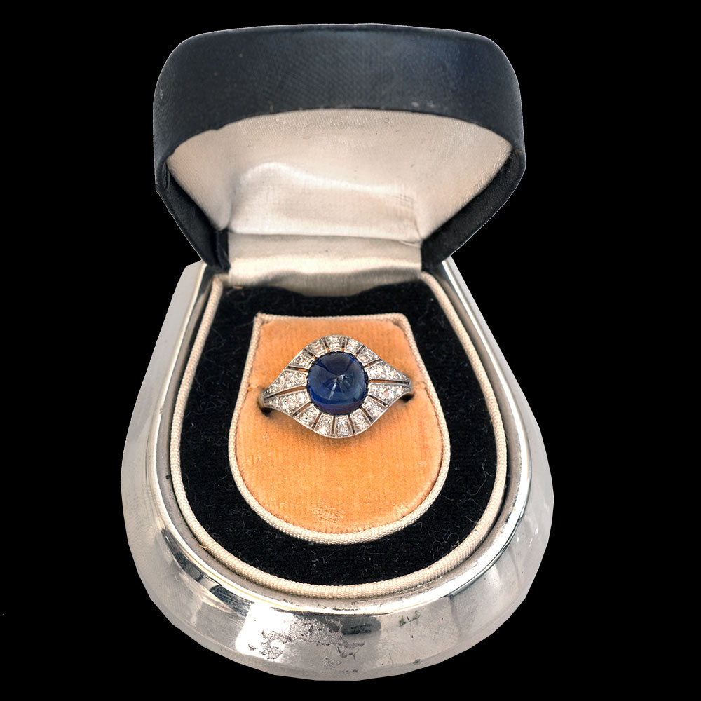 Magnificent Art Deco platinum cabochon Sapphire, and diamond 1920s ring