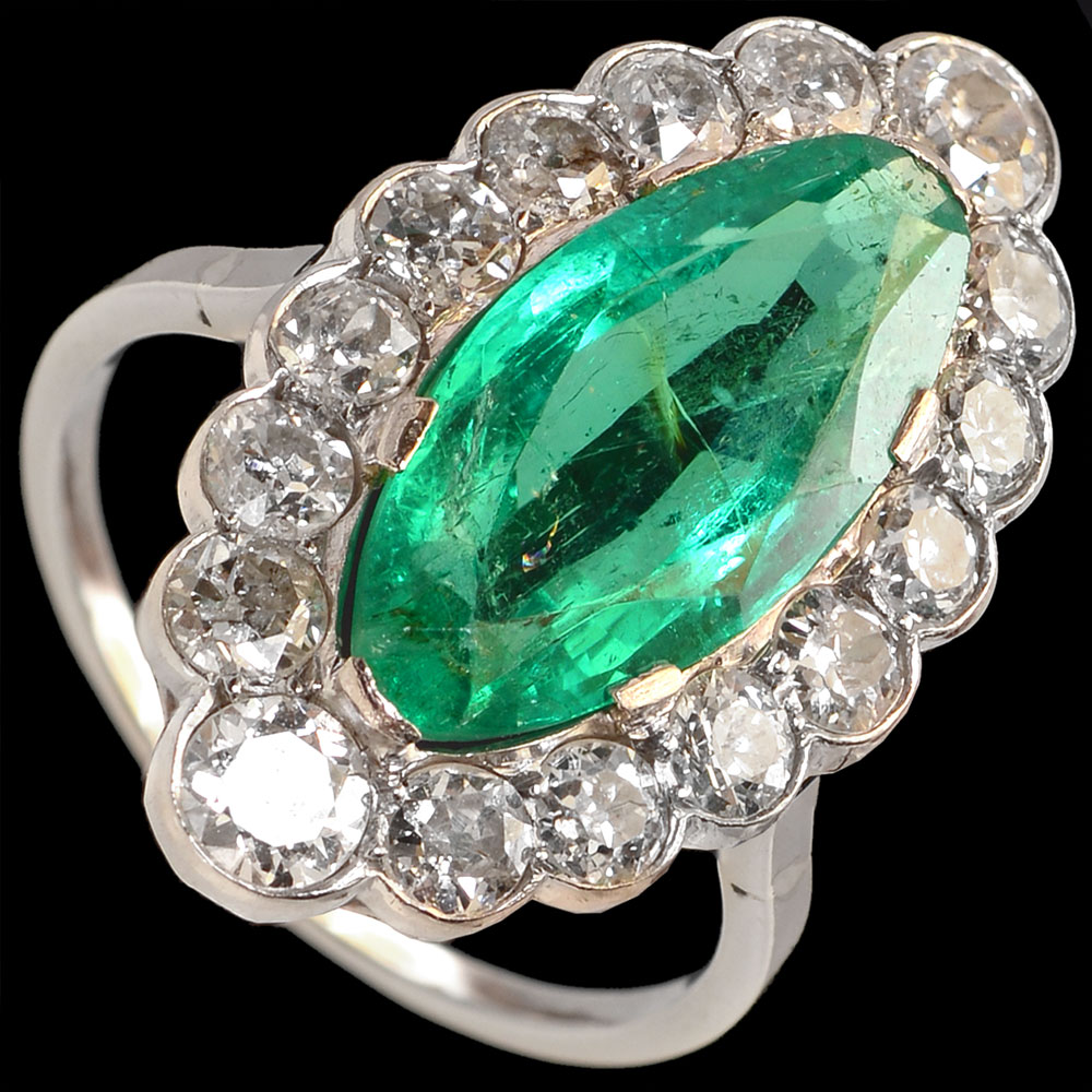 Platinum Emerald & Diamond Ring