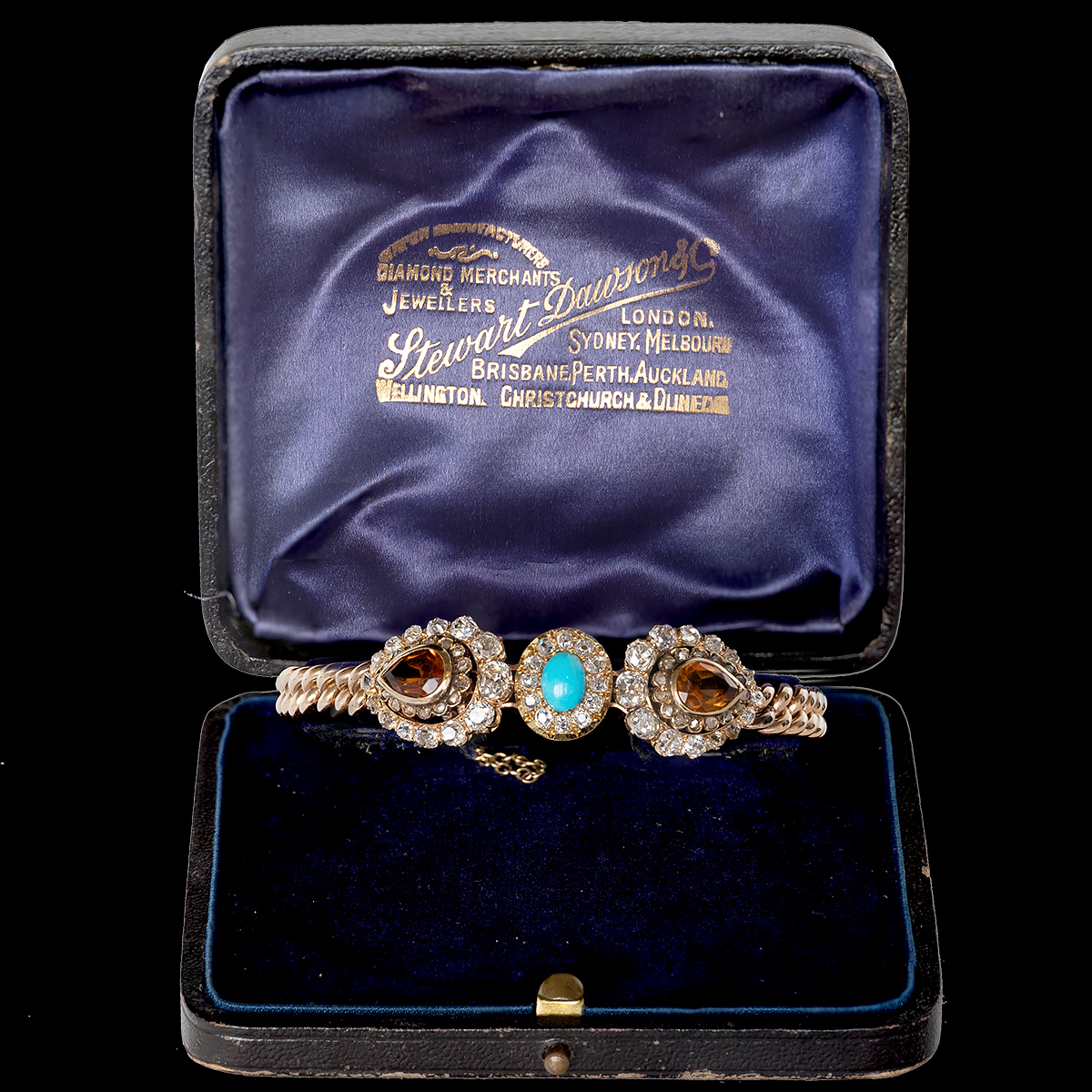 rare 15ct victorian diamond, turquoise and citrine bracelet that can be worn as a brooch (brooch fitting included)