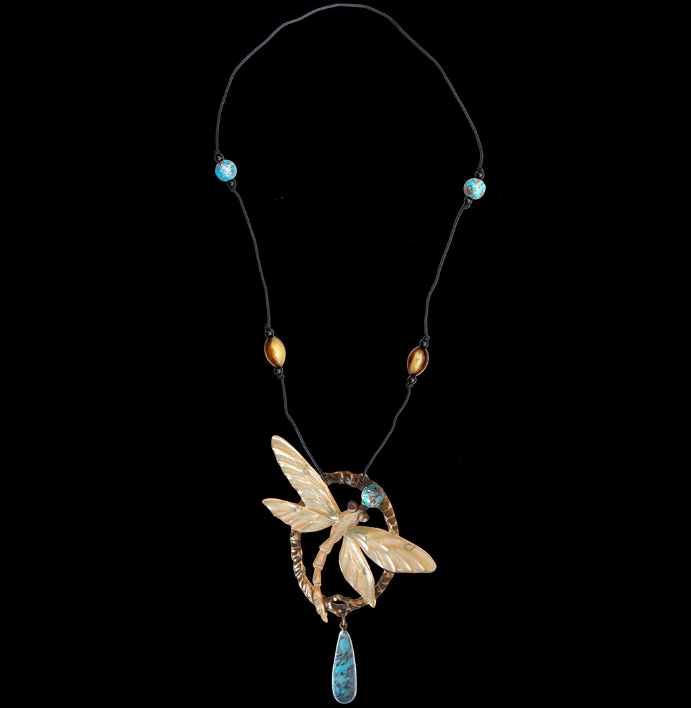 Rare Elizabeth Bonté art nouveau Horn Dragonfly Pendant
