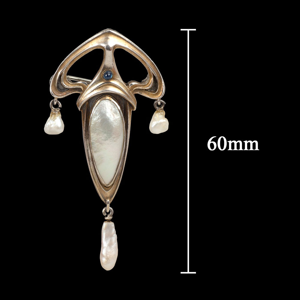 Wonderful Silver and Pearl Art Nouveau brooch set with Sapphire