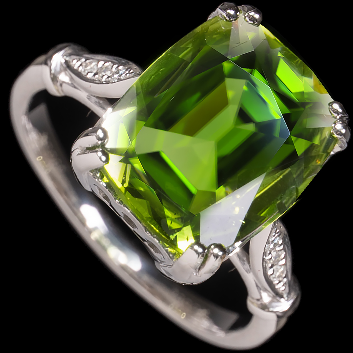 (English) 18ct Peridot and diamond ring