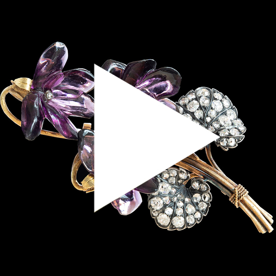 (English) magnificent antique amethyst paste and diamond violet brooch