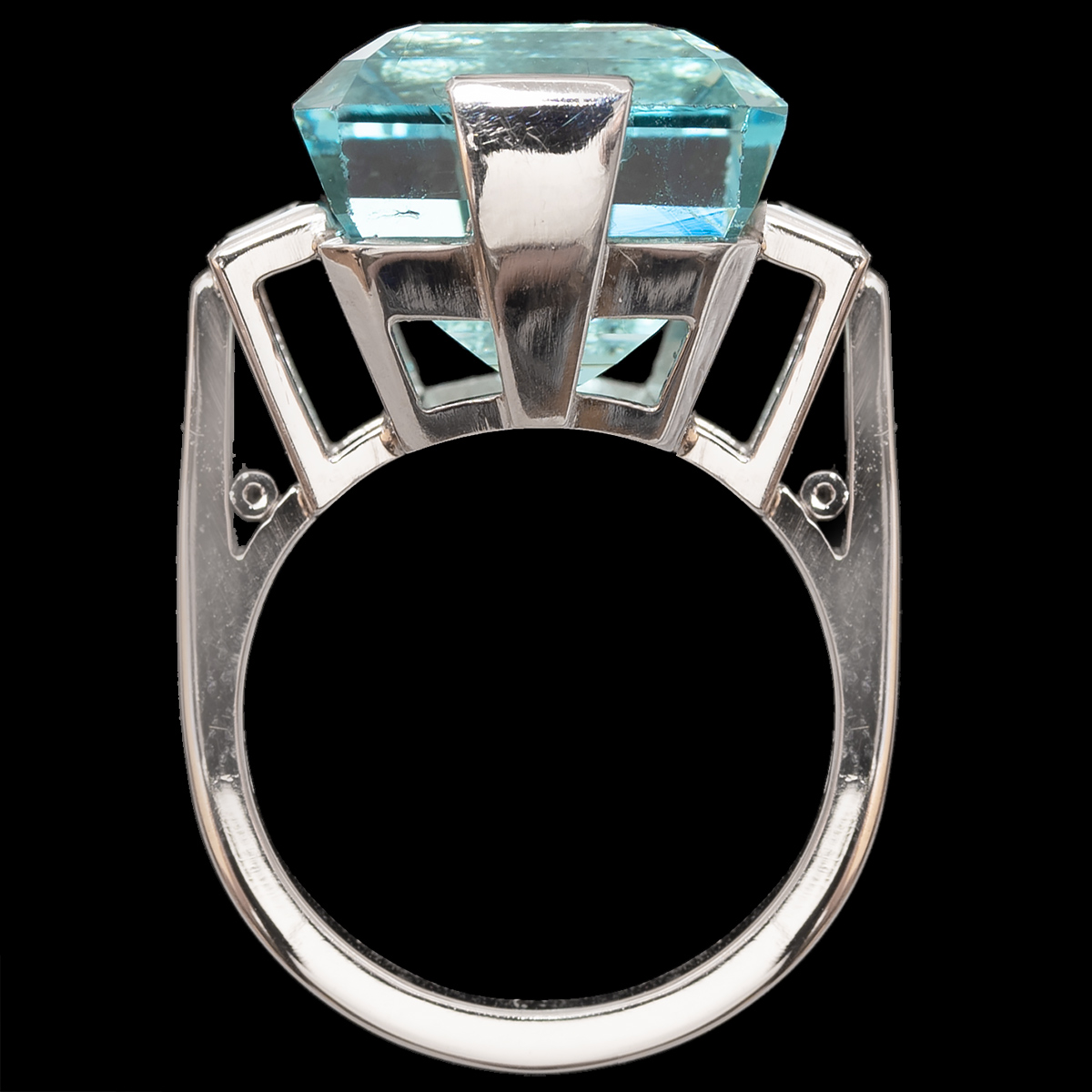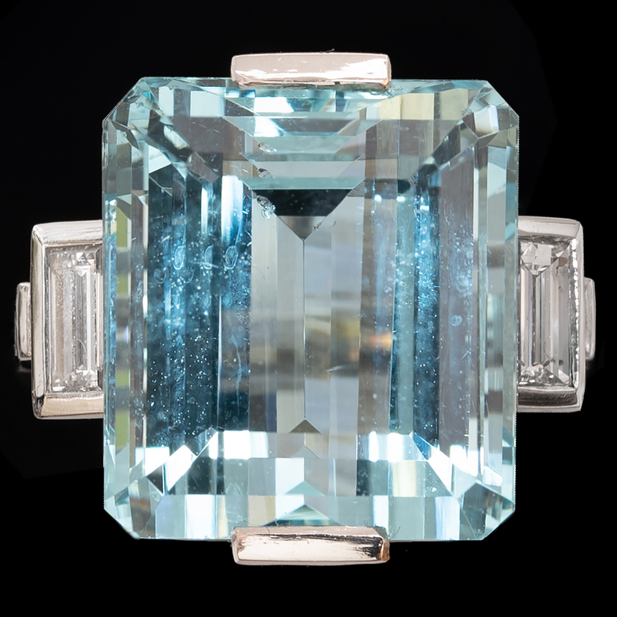 (English) Platinum & outstanding 22.6ct Aquamarine & Diamond ring diamond weight .66pts